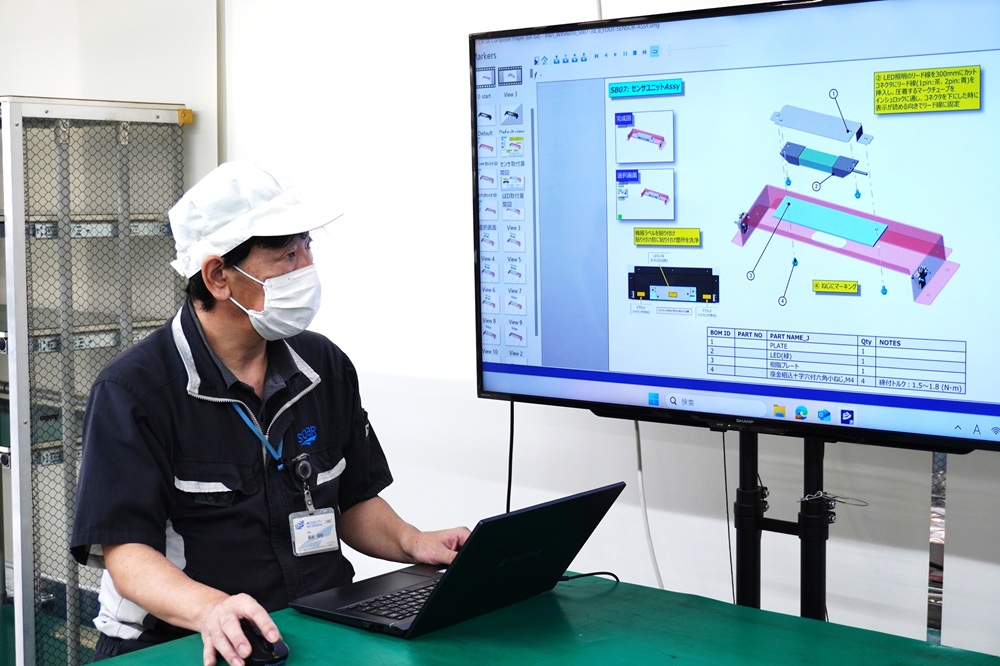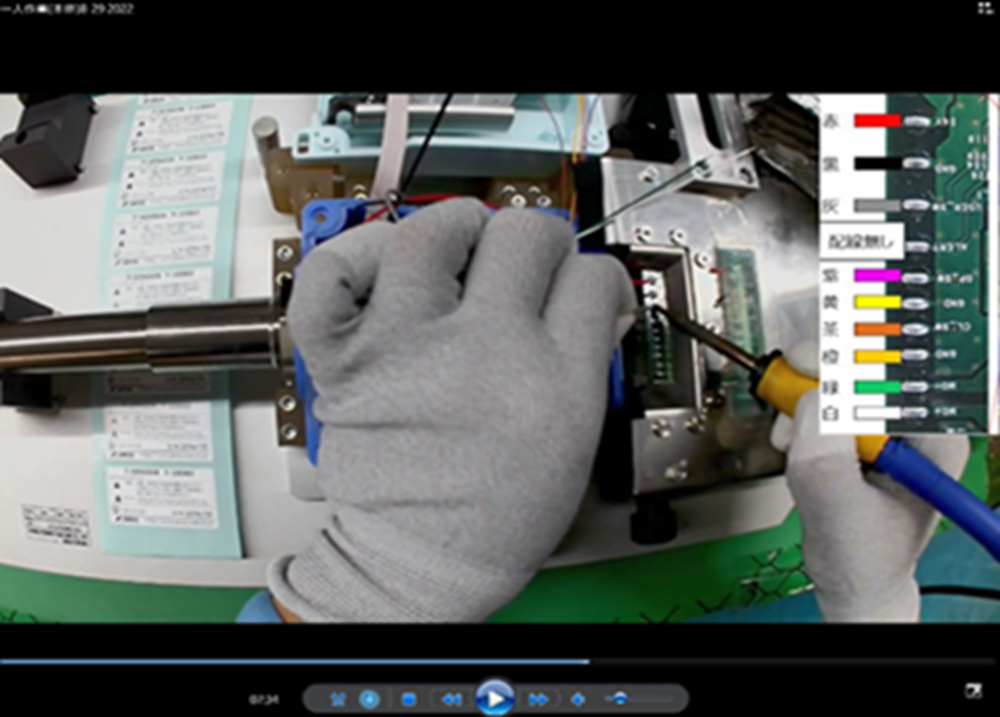 また、一人ひとりの技術力はスキルマップを使って適正に評価し、最適な役割を担ってもらうことで、最大限活躍してもらえるよう配慮しています。作業動画を使った教育も導入しており、製品の取り扱い方や作業タイミングを分かりやすく伝えることで、理解度を向上させることができています。